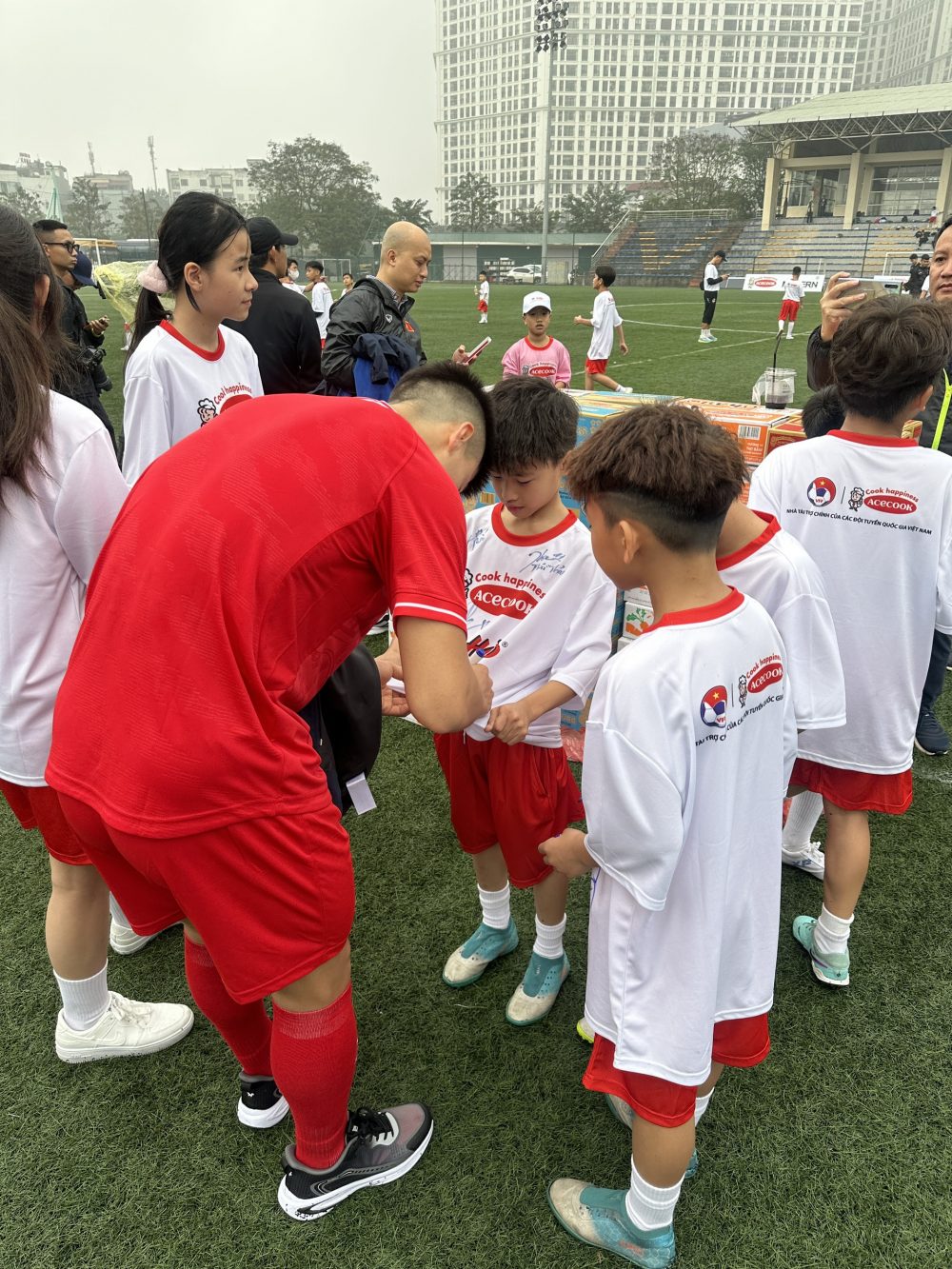 Làng trẻ em SOS Việt Nam xin gửi lời cảm ơn sâu sắc đến Liên đoàn Bóng đá Việt Nam, Công ty Cổ phần Acecook Việt Nam và các tuyển thủ quốc gia đã tạo điều kiện cho các con trẻ của Làng có những trải nghiệm quý báu. Sự quan tâm và hỗ trợ này đã góp phần quan trọng trong việc nuôi dưỡng ước mơ và niềm tin vào tương lai tươi sáng hơn cho các con.