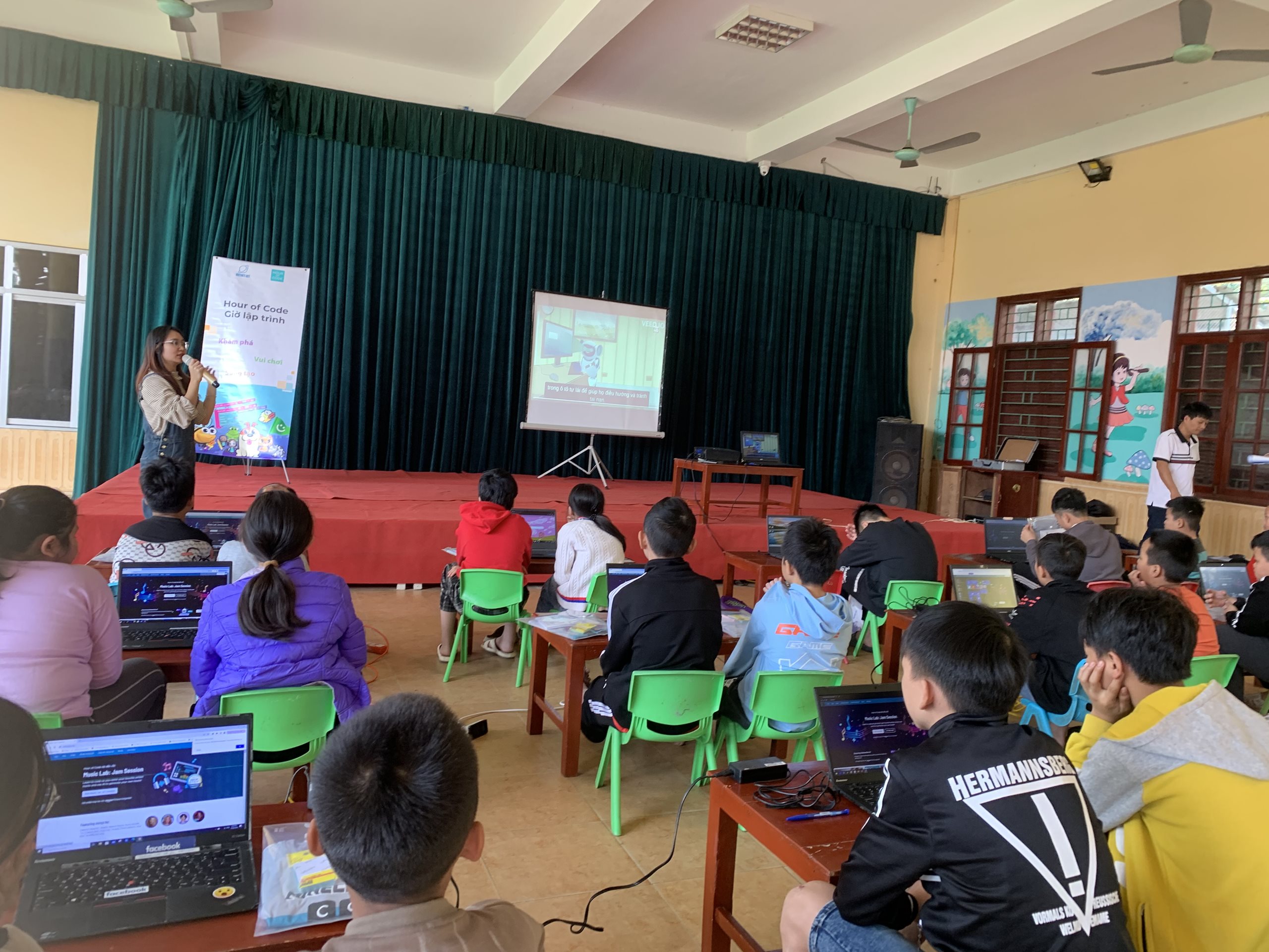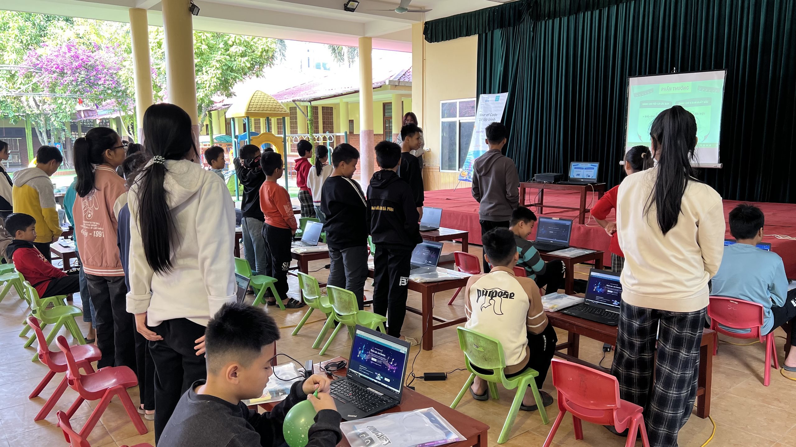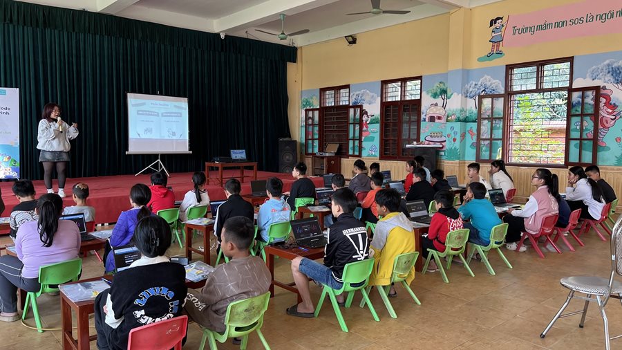 Nhằm hưởng ứng Tuần lễ Khoa học Máy tính hằng năm, ngày 29/12 vừa qua, Làng trẻ em SOS Thanh Hóa đã phối hợp với Trung tâm Công nghệ Thông tin - Truyền thông Vietnet (Vietnet-ICT) tổ chức chương trình Giờ Lập Trình 2024 dành cho 30 con trẻ từ 7-13 tuổi.