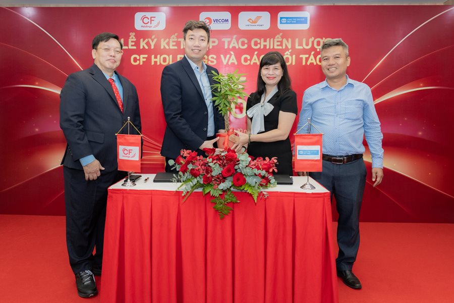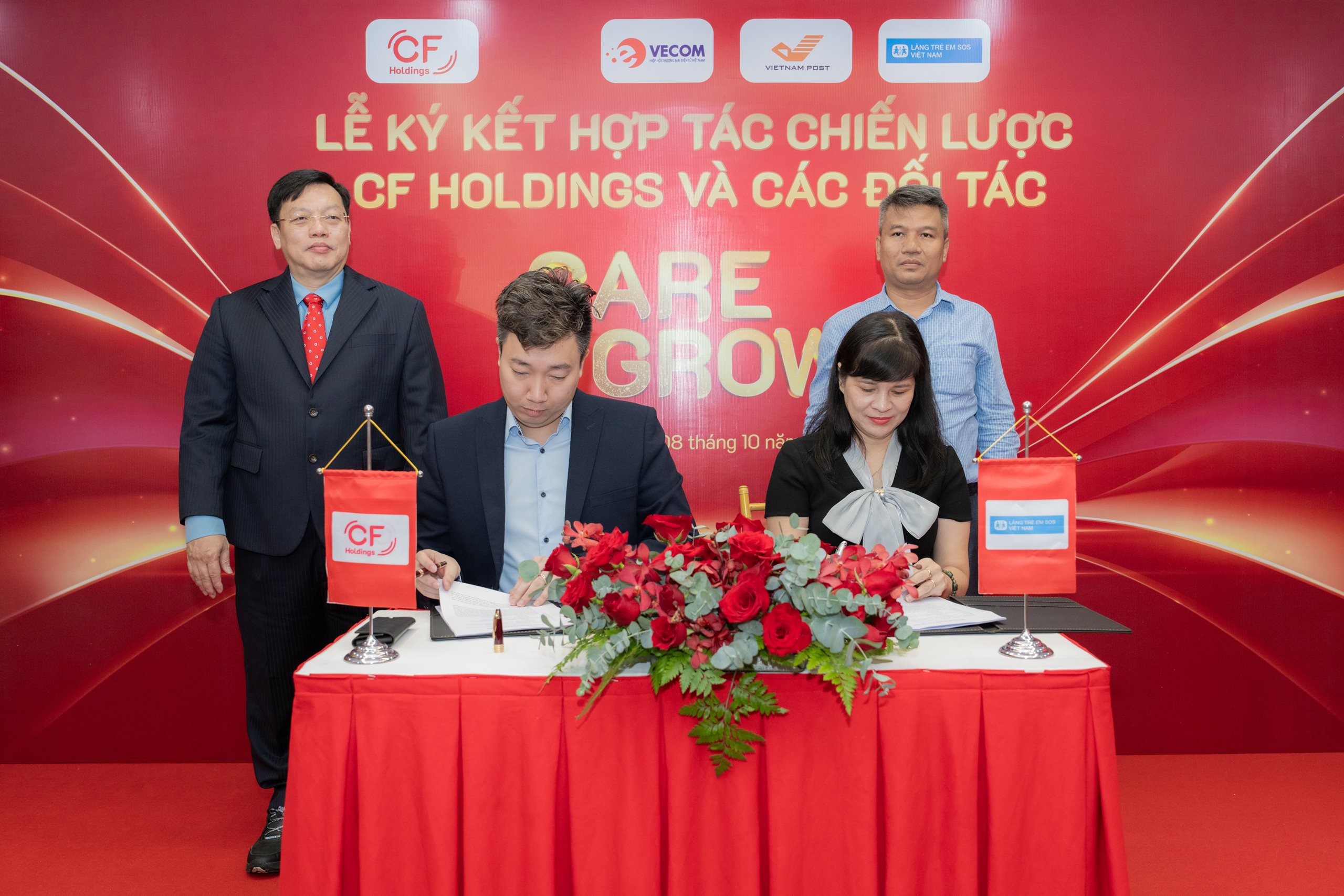Sáng ngày 8/10, bà Lê Minh Giang - Giám đốc Quốc gia Làng trẻ em SOS Việt Nam và ông Hoàng Long - Giám đốc Làng trẻ em SOS Gò Vấp đã tham dự buổi ký kết hợp tác chiến lược của Tập đoàn CF Holdings với các doanh nghiệp và tổ chức, bao gồm Hiệp hội Thương mại Điện tử Việt Nam (Vecom), Bưu điện Trung tâm Việt Nam - Chi nhánh Tổng Công ty Bưu điện Việt Nam (VNPost) và Làng trẻ em SOS Việt Nam.